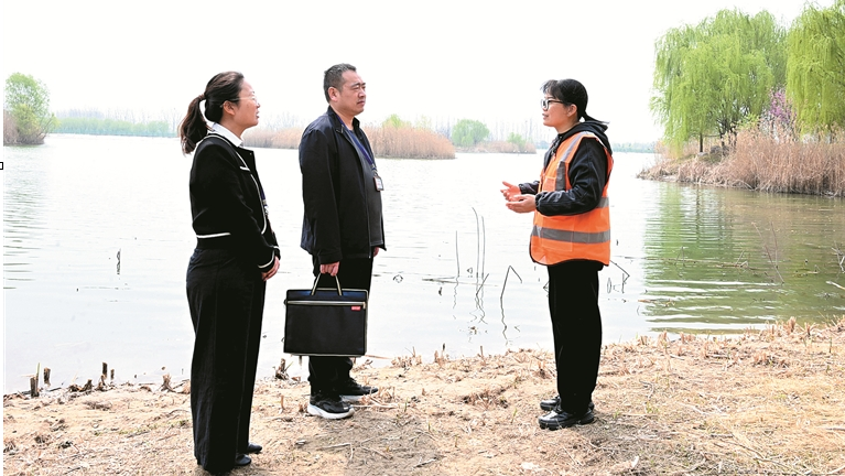 图为3月24日,河南省洛阳市孟津区纪检监察干部在孟津黄河湿地国家级自然保护区向工作人员了解有关情况。王奇 摄